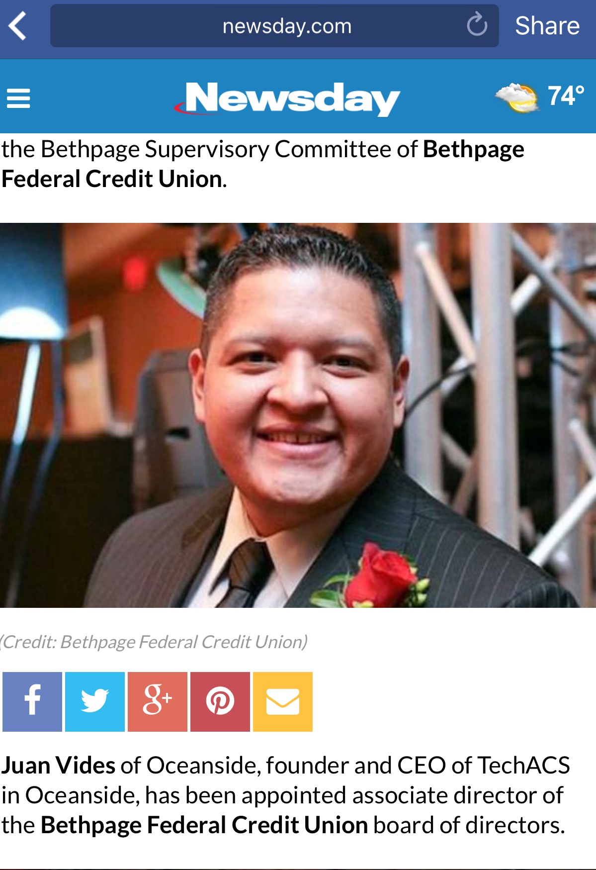 Juan lives with his wife, son, and daughter in Oceanside, NY. He volunteers as an Associate Director for Bethpage Federal Credit Union, is active on the Board of Directors of the American Heart Association of Long Island as well as the Hicksville Chamber of Commerce. Juan feels that his life has been one of good fortune. He likes to share that with as many people as he can. He gives back by offering web services pro bono, or at significant discounts to local non-profit organizations. He continues to actively reach out to support and enrich the community of Long Island, his home since he made the long journey from El Salvador as a young boy.