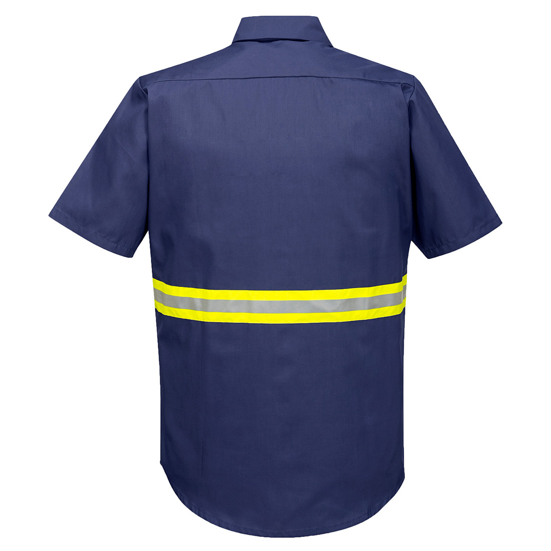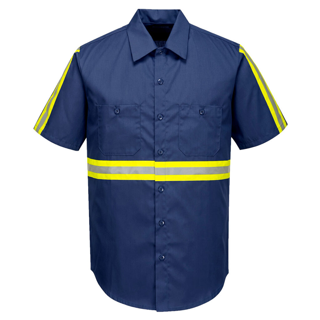 The Portwest F124 short sleeve safety shirt represents the perfect intersection of functionality and professional appearance. This navy workwear essential is engineered for workers who refuse to compromise between safety compliance and all-day comfort.