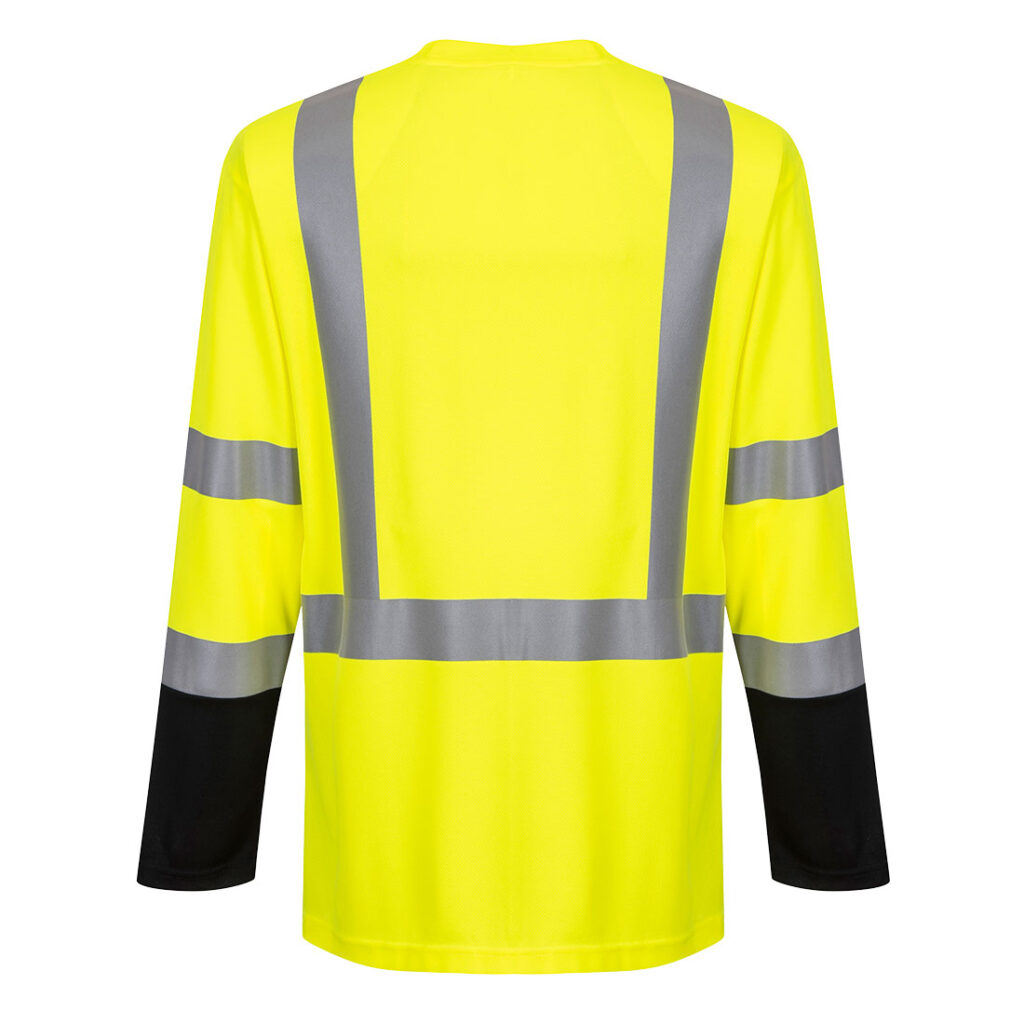 A: The S398 is an ANSI/ISEA 107 Type R Class 3 long-sleeve hi-vis T-shirt with contrast pocket, made from breathable bird-eye knit polyester.